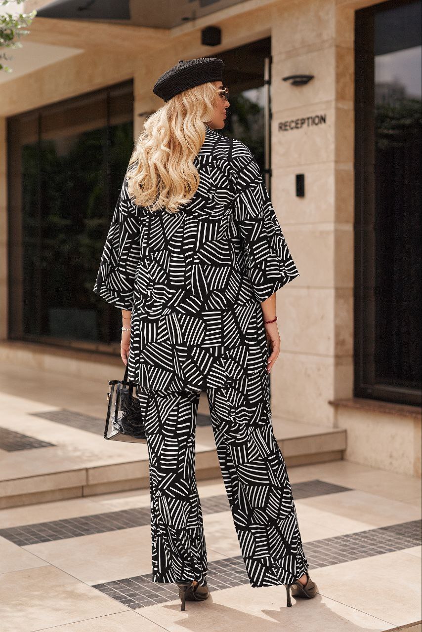 Стильний костюм із принтом "Абстракція"💖Тканина: принтований софт (сезон весна-літо-осінь , плотний)Кольори: чорний штрихи, білий штрихи, білий лабіринт, блакитнийСтильний, вільний, зручний костюм. Приховує усі недоліки. В ньому ви будете виглядати неперевершено💖🌹Сорочка на гудзиках. Пояс штанів на резинці. Є дві кишені на брюках і одна на грудях.Розміри: 50-52, 54-56, 58-60, 62-64Костюм має бути вільним‼️Від замірів виробу залишайте про запас хоча б 5-7 смЗаміри по виробу:🧵50-52р.Блуза: Ог 130, От 122, Ос 126, Довжина 82, Довжина рукава 57Штани: От до 120, Ос 126, Довжина 102🧵54-56р.Блуза: Ог 138, От 130, Ос 134, Довжина 82, Довжина рукава 58Штани: От до 126, Ос 130, Довжина 104🧵58-60р:Блуза: Ог 144, От 134, Ос 140, Довжина 83, Довжина рукава 60Штани: От до 130, Ос 136, Довжина 105🧵62-64р.Блуза: Ог 152, От 140, Ос 146, Довжина 84, Довжина рукава 62Штани: От до 136, Ос 142, Довжина 107ℹ️Параметри моделі на фотоℹ️Ог 110, От 83, Ос 110, Зріст 166Розмір 50-52